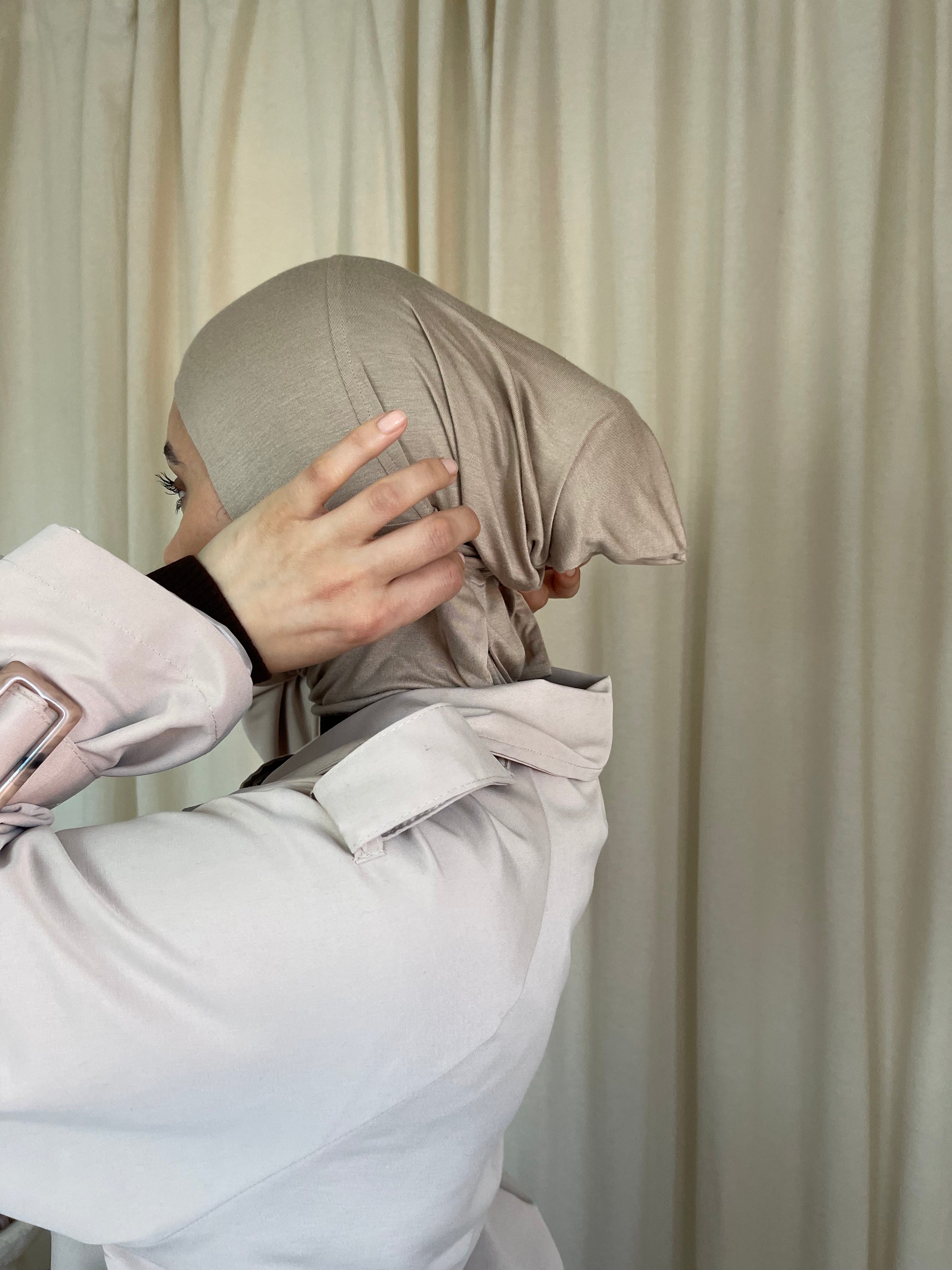 Crafted for full coverage, our under-caps are carefully shaped to complement your face seamlessly. Created with the gentlest fibers available, this under-cap lets you comfortably style your hijab without concerns about revealing your neck. Or you can wear it on its own as a head-cover!